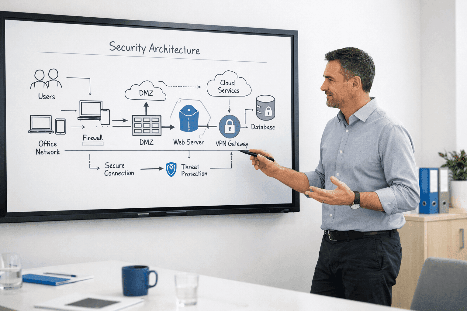 Moderne IT-Security basiert nicht auf Einzelprodukten, sondern auf einer abgestimmten Sicherheitsarchitektur. Sie verbindet Prävention, Erkennung und Reaktion zu einem integrierten Schutzsystem.