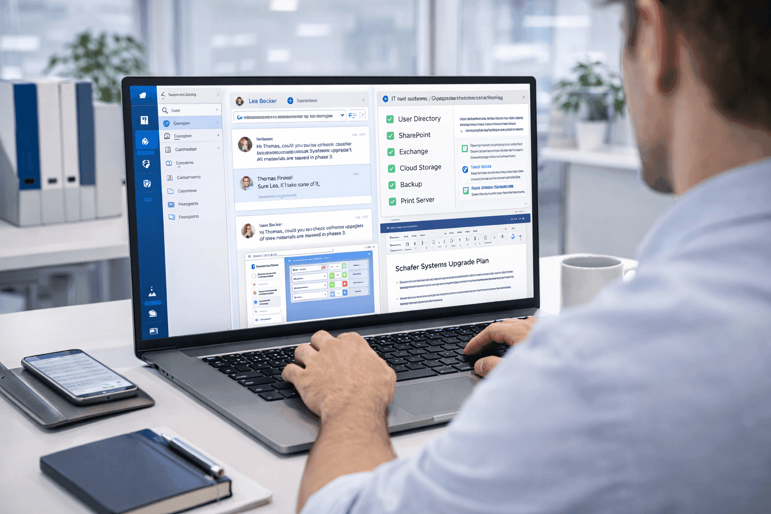 Wer Büro, Homeoffice und mobile Arbeit verbindet, braucht eine IT, die Nutzer zuverlässig unterstützt und sicher betreibt.