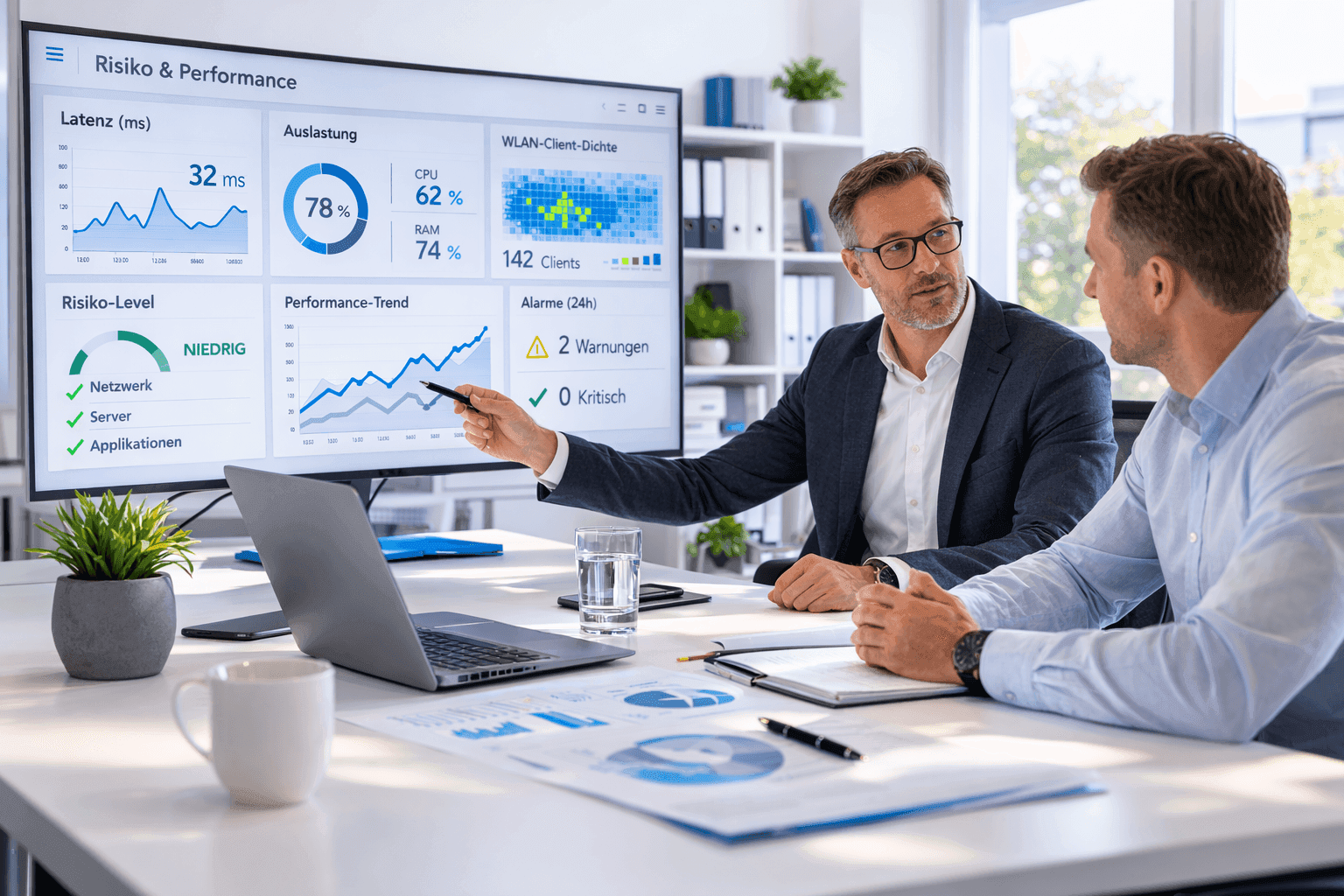Sie erhalten keine „Switch- und Access-Point-Liste“, sondern eine nachvollziehbare Architekturentscheidung inklusive Roadmap, Skalierungsstrategie und klarer Verantwortlichkeiten.